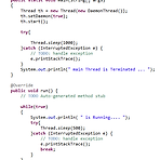 앞에 포스팅에서 봤겠지만 MainThread가 종료됬다고해서 그 안에서 동작하던 Thread들은 종료되지 않는다.(http://idea-sketch.tistory.com/admin/entry/post/?id=17) 그래서 이번에는 MainThread가 종료될때 같이 종료되는 Thread를 만들어보자. 방법은 아주아주 * 100 간단하다!! 바로 setDaemon() 을 true로 설정하면 끝! 다음은 예제 코드이다. 실행결과이다. MainThread가 종료되고 난후 더이성 is Running...이 뜨지 않는다. 즉 그 안에서 동작중이던 Thread도 같이 종료되었다~ 누군가에게는 작은도움이 되었기를 바라면서 오늘의 포스팅 끝~